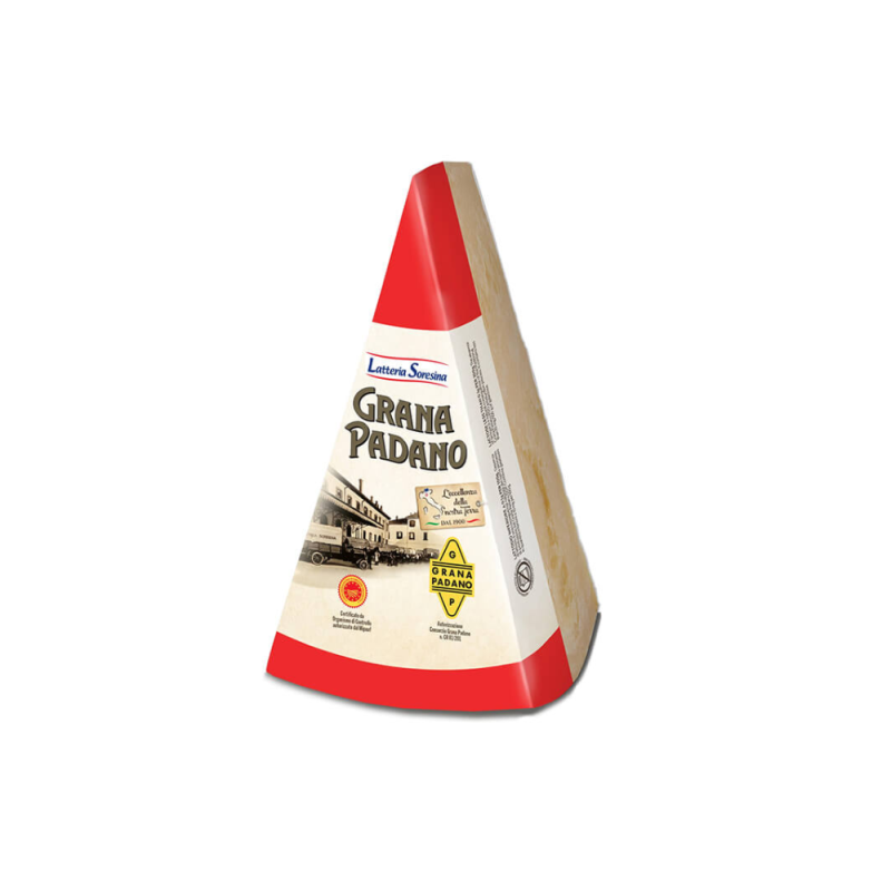 Grana Padano is a sweet-scented semi-fat cheese with a delicate flavour and a hard and granular paste, after being cooked and left to mature. It is made with partially skimmed cow milk naturally risen to the surface in open-top stainless steel basins. The animals are fed pursuant to disciplinary measures drawn up by the Consorzio di Tutela (Protection Consortium) made up of over 200 dairy farmers. It is produced in cylinder shapes weighing approximately 35 Kg. Grana Padano is a highly versatile cheese, when young, it is best eaten raw since it is softer and delicate. When it is mature and grated, its more distinct flavour enhances soups, risotto and pasta dishes.